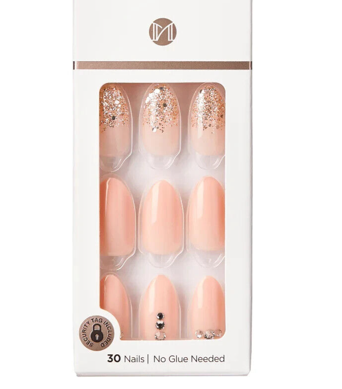 KISS IMPRESS PRESS ON NAILS ONE STEP MANICURE NEW ROSIE PEACH SKY MEDIUM LENGTH