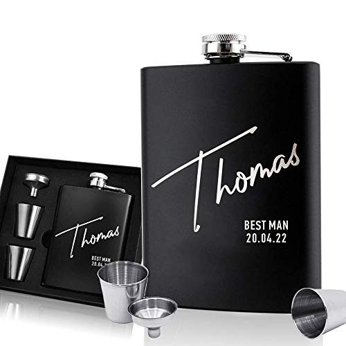 EDSG Personalised Hip Flask | Engraved Stainless Steel Whisky Flask 6oz Pocket Flask | Custom Gift for Best Man Groomsman Father Wedding Birthday Christmas | Hand Finished in UK (Name)