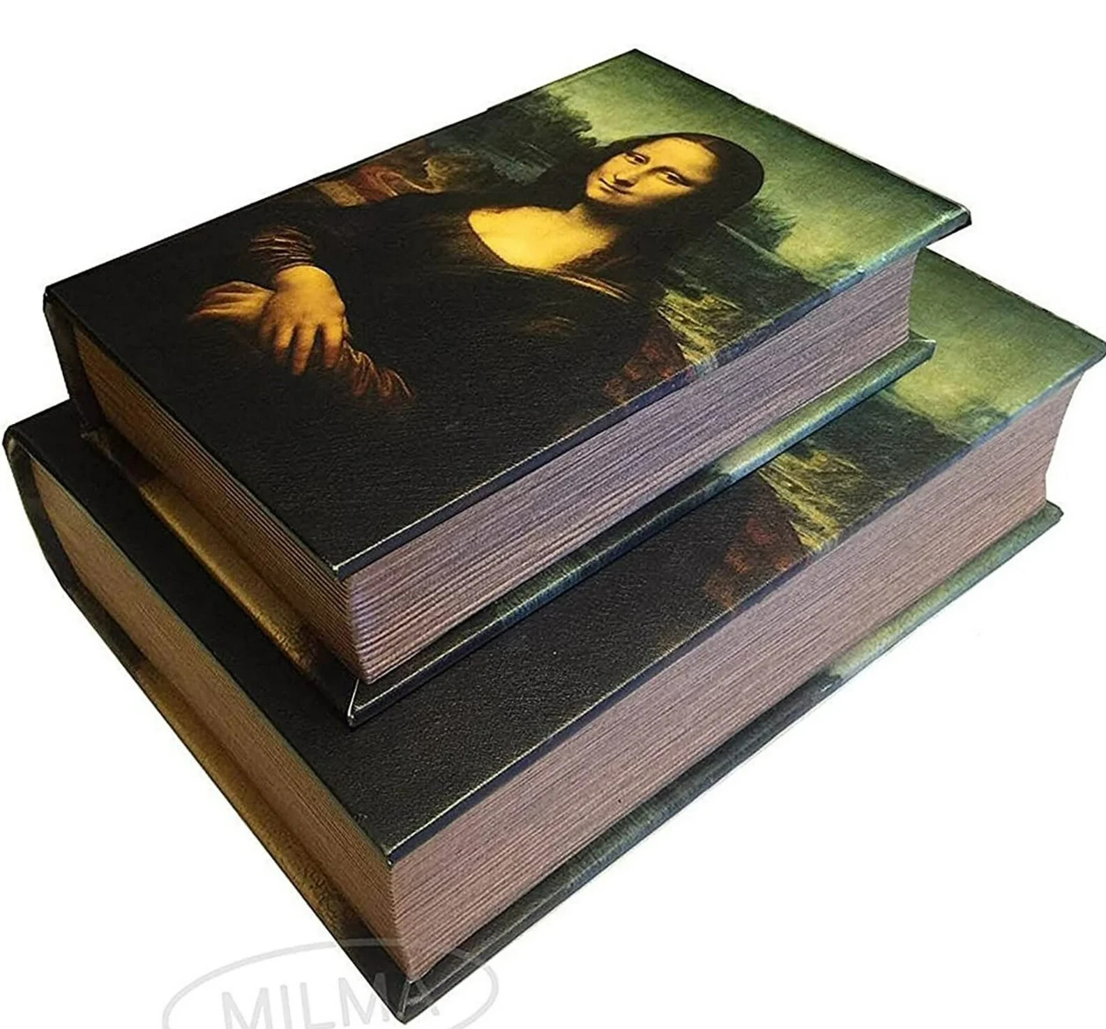 HANIPOL MONA LISA Book Box Set 2in1 Secret Hidden Storage Wood Jewelry Box Coffe