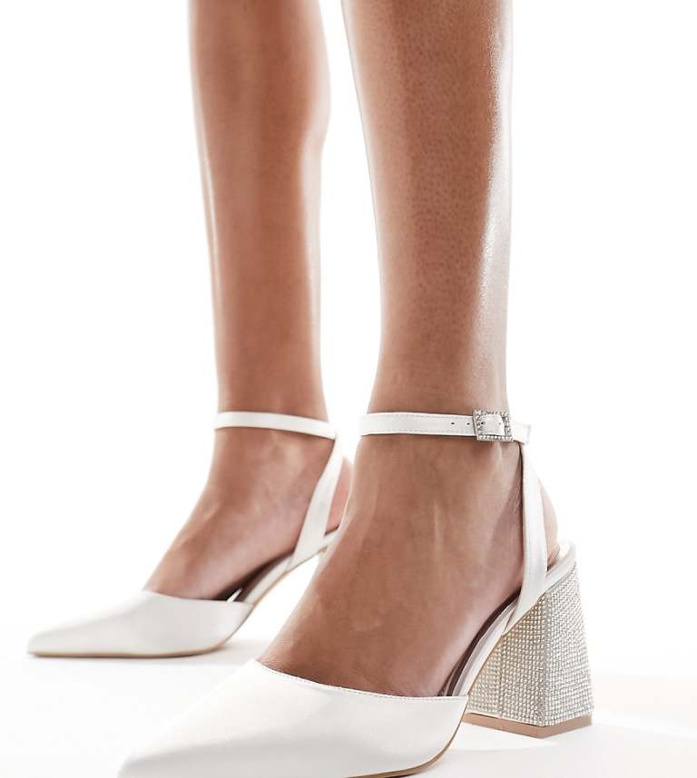 Be Mine Womens Wide Fit Bridal Rylee embellished heeled shoes in ivory satin-White - Size UK 5