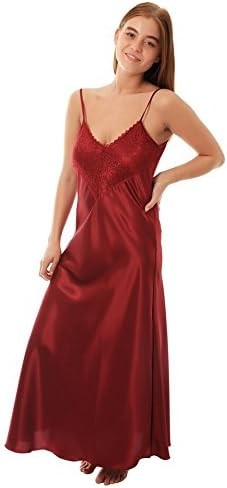 Ladies Elegant Sexy Long Satin Nightie/Chemsie in White,Ivory,Red,Navy,Black,Bl