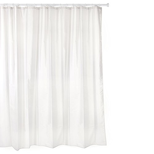 TATAY Bathroom curtain made of water-repellent polyester, washable, avoids humidity, in white colour, satin finish. Includes rings