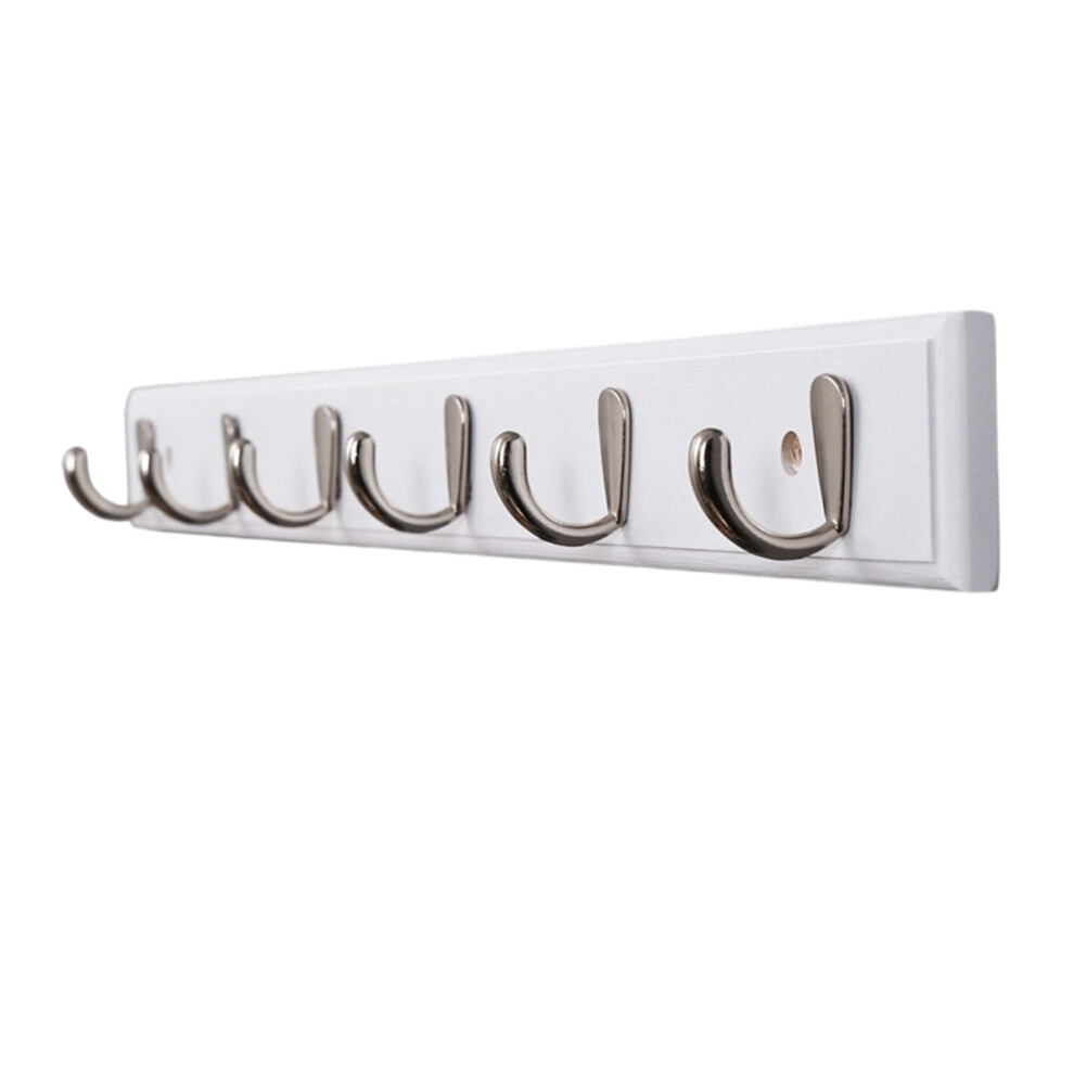 27" Hook Rail / Rack, with 6 Heavy Duty Coat and Hat Hooks, in White & Satin Nickel