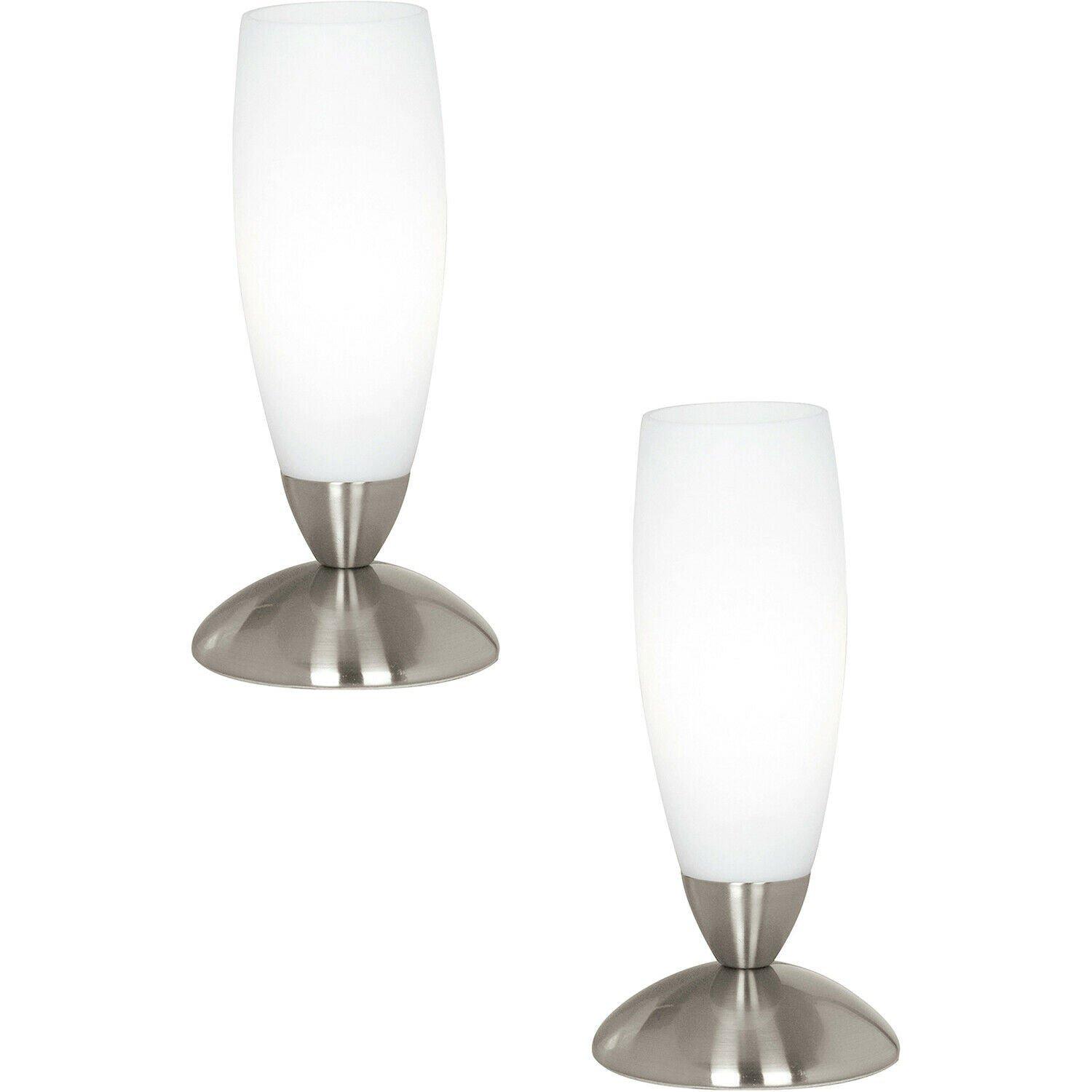 2 PACK Table Lamp Colour Satin Nickel Shade White Glass In Line Switch E14 40W
