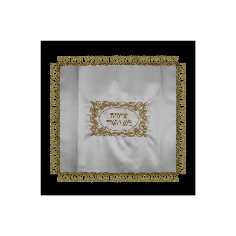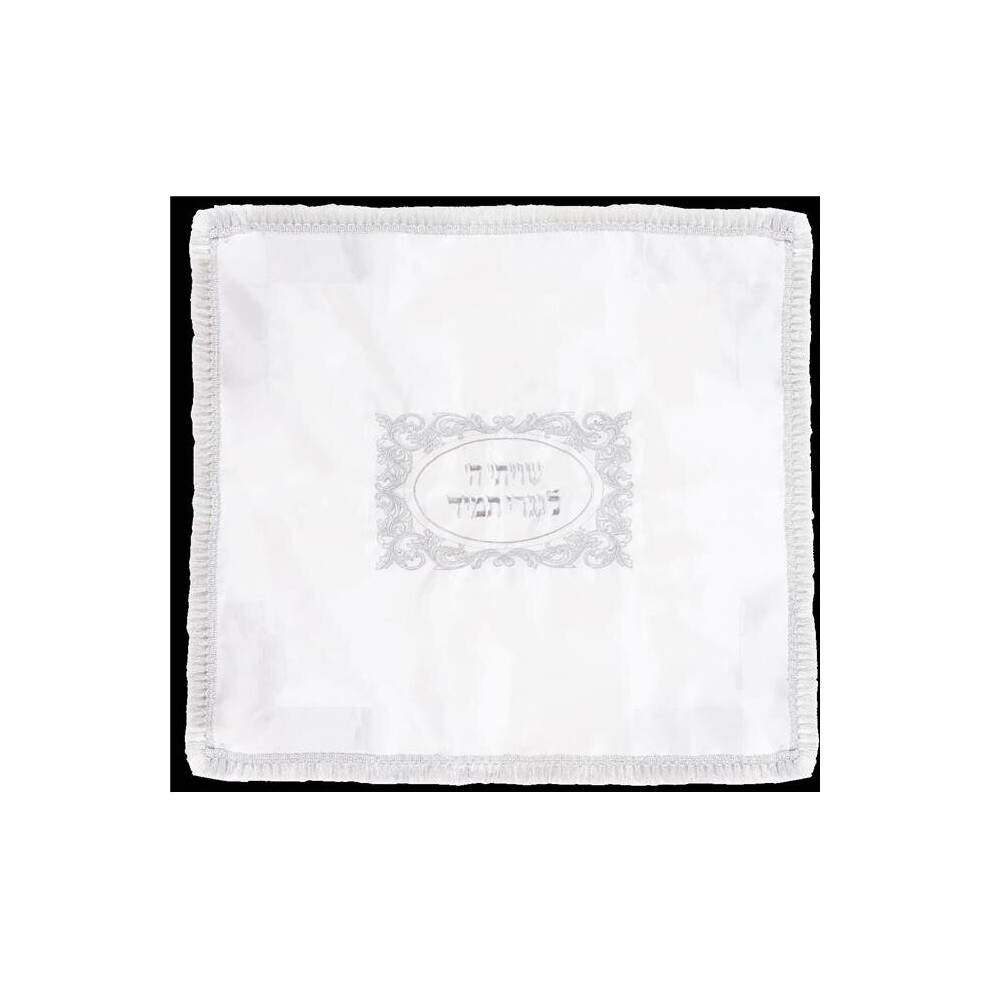 26 x 22 in. Atarah Style White Satin Silver Challah Cover