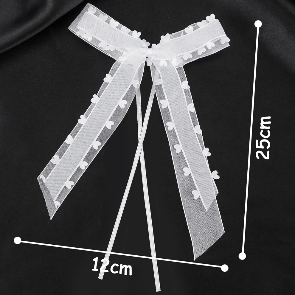 Delicate Wedding Decorations, Pre-Tied Bows In White Satin Ribbon, Handmade With Hearts Design For Outdoor Wedding Decor, Versatile Uses From Weddings