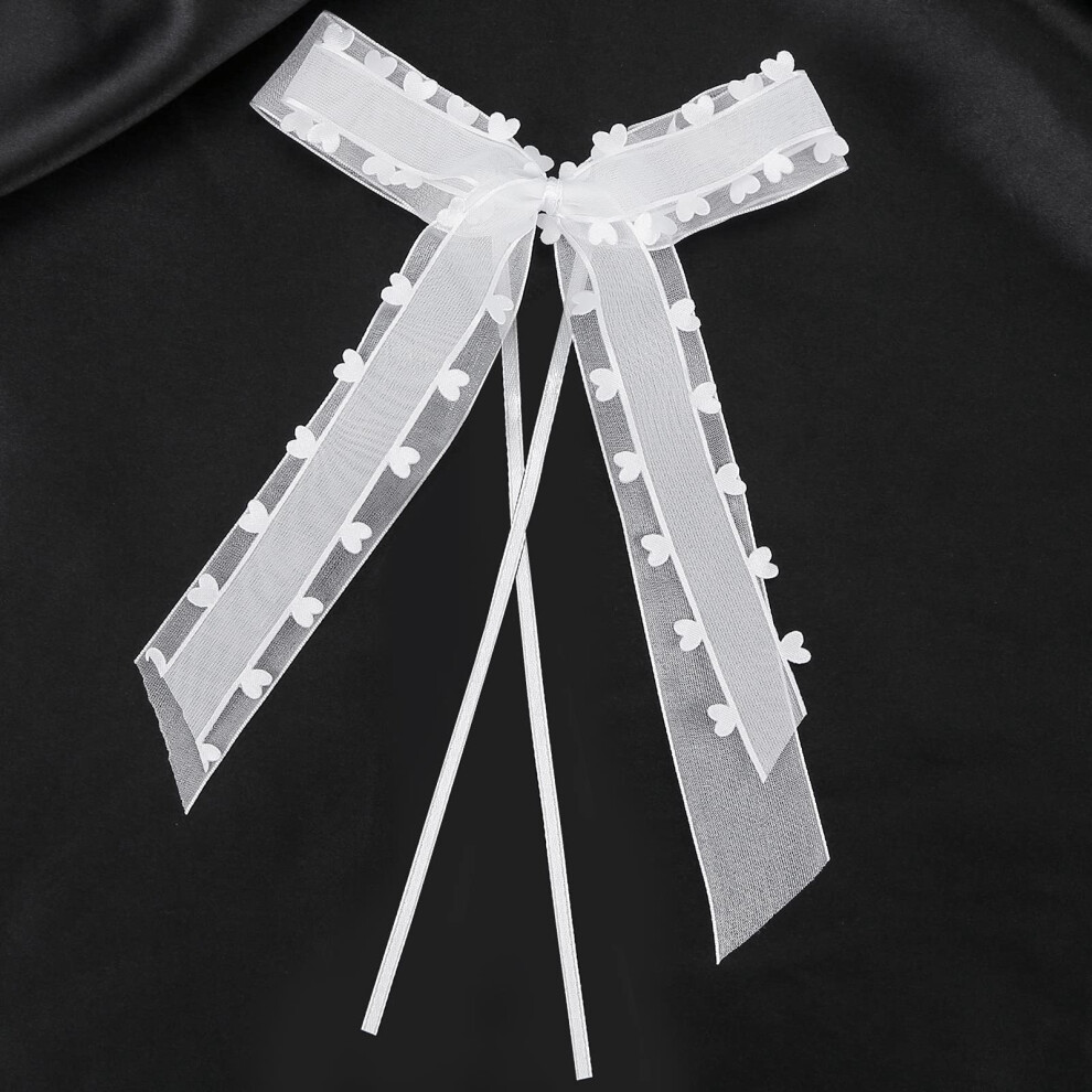 Delicate Wedding Decorations, Pre-Tied Bows In White Satin Ribbon, Handmade With Hearts Design For Outdoor Wedding Decor, Versatile Uses From