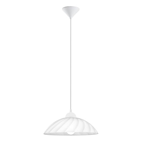EGLO Vetro Pendant Light, 1-Bulb Classic Pendant Light Made of Satin Glass with Curved Decoration, Plastic, Dining Table Lamp in White, Kitchen Lamp Hanging with E27 Socket, Diameter 35 cm