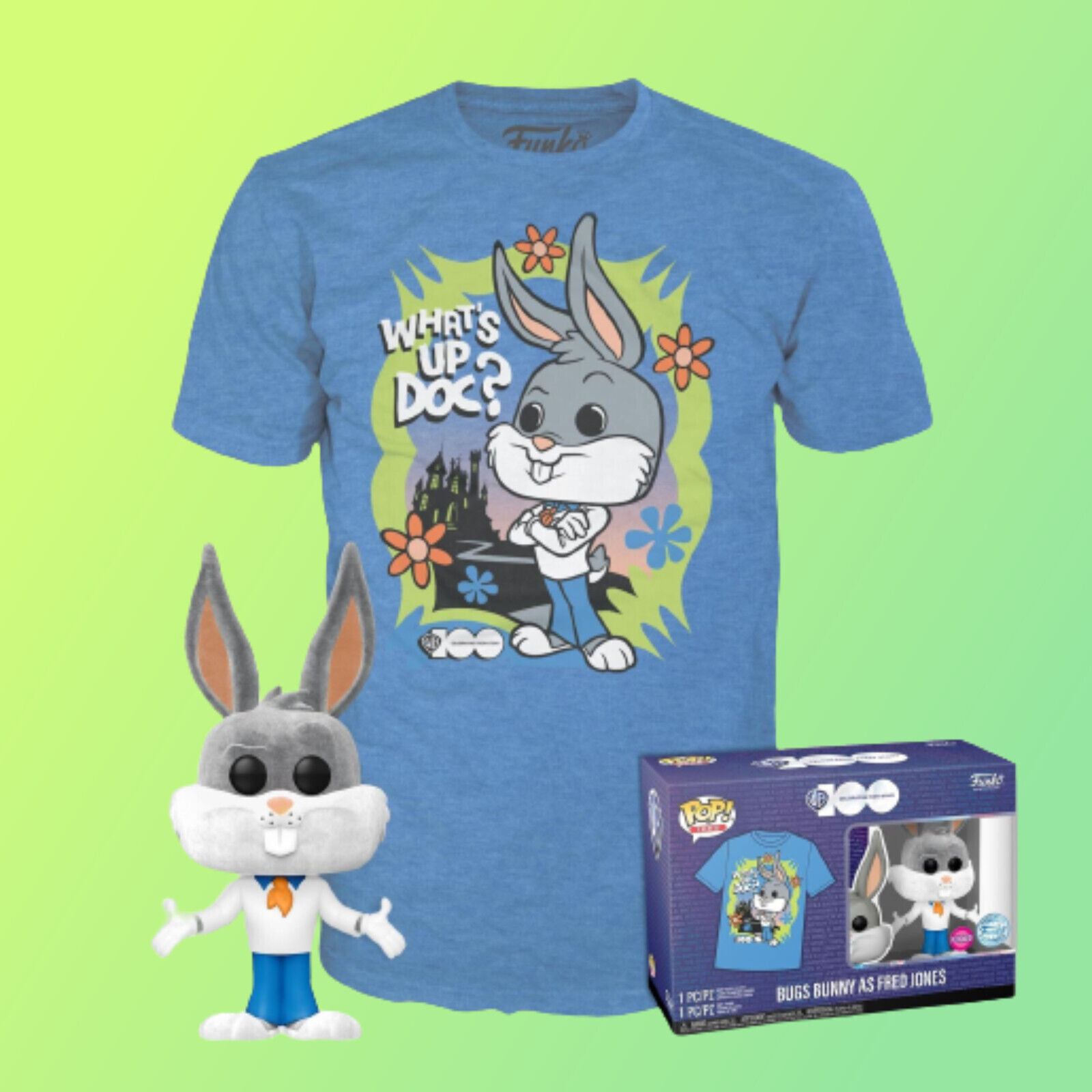 Funko POP & Tshirt WB100 Bugs Bunny As Fred Jones Flocked Large Set Gift Toy