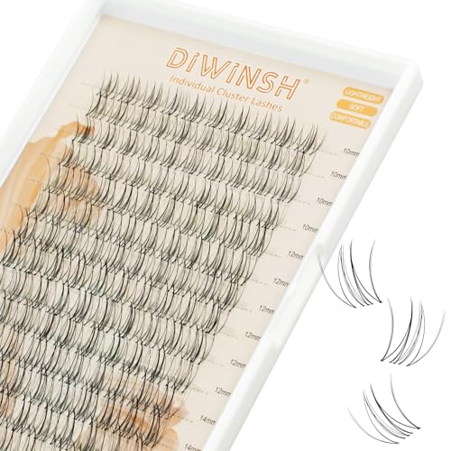 DIWINSH Wispy Cluster Lashes 140 Pcs 10-14 mm Manga Eyelashes C Curl DIY Natural Individual Cluster Eyelash Extensions Thin Lash with Clear Lash Band Your Look for Beginners (ME-10-14mm)