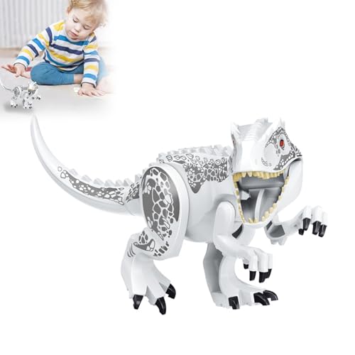 Dinosaur Building Blocks Toy for Kids, Large T-Rex & Indominus Rex DIY Construction Set with Movable Jaws & Joints, Realistic Dinosaur Model, Educational Toys for Boys and Girls Ages 6-12 (White)