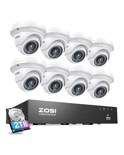 ZOSI 4K 8CH PoE CCTV Camera System, 4X5MP Outdoor Indoor PoE Security Camera Dome, 8 Ports 16CH 8MP NVR Recorder with 2TB HDD, Motion Detection, 100ft Night Vision, Alert Siren, IP66 Waterproof