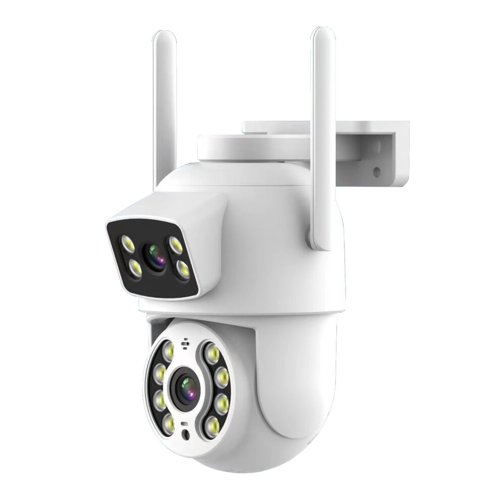 Dual-Lens WiFi PTZ Camera, Indoor/Outdoor Audio PIR IP66 Waterproof Color Vision Wall Mount Security Camera
