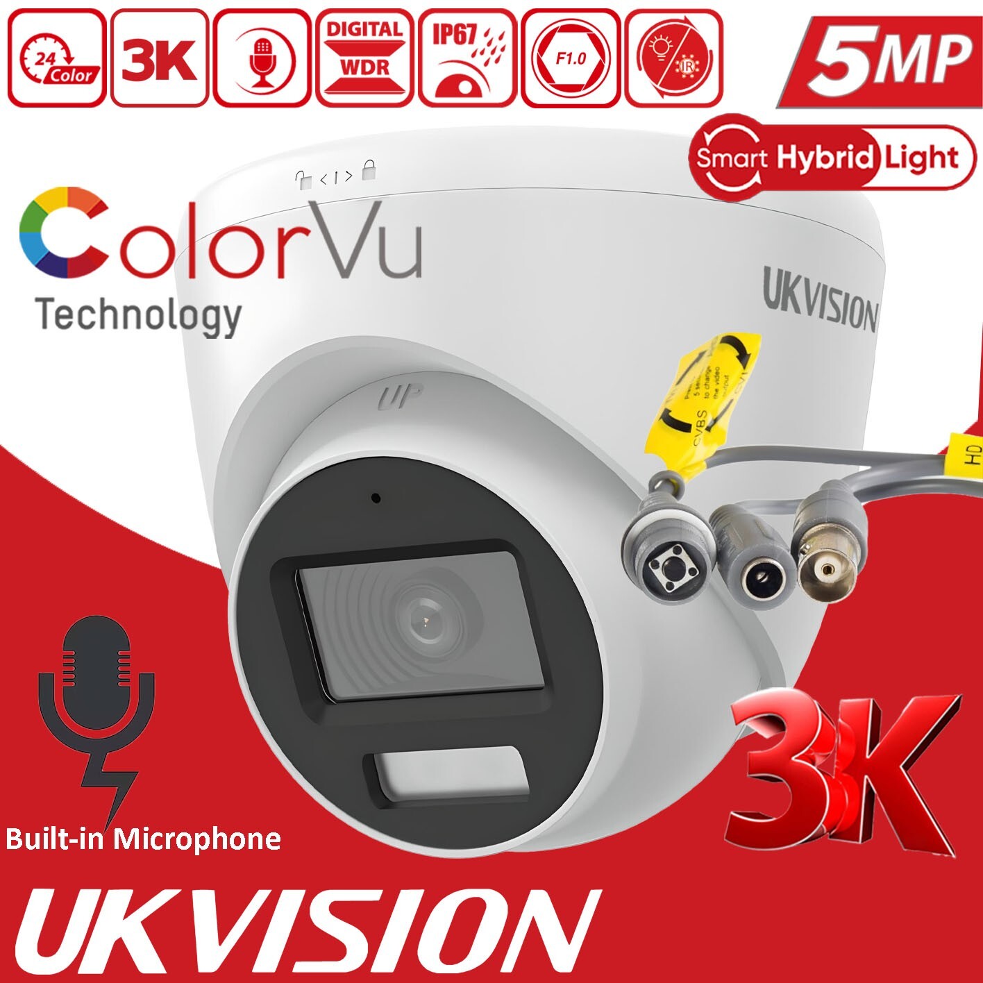 HIKVISION OEM 5MP 3K CCTV ColorVu Audio Mic INDOOR/ OUTDOOR SECURITY CAMERA