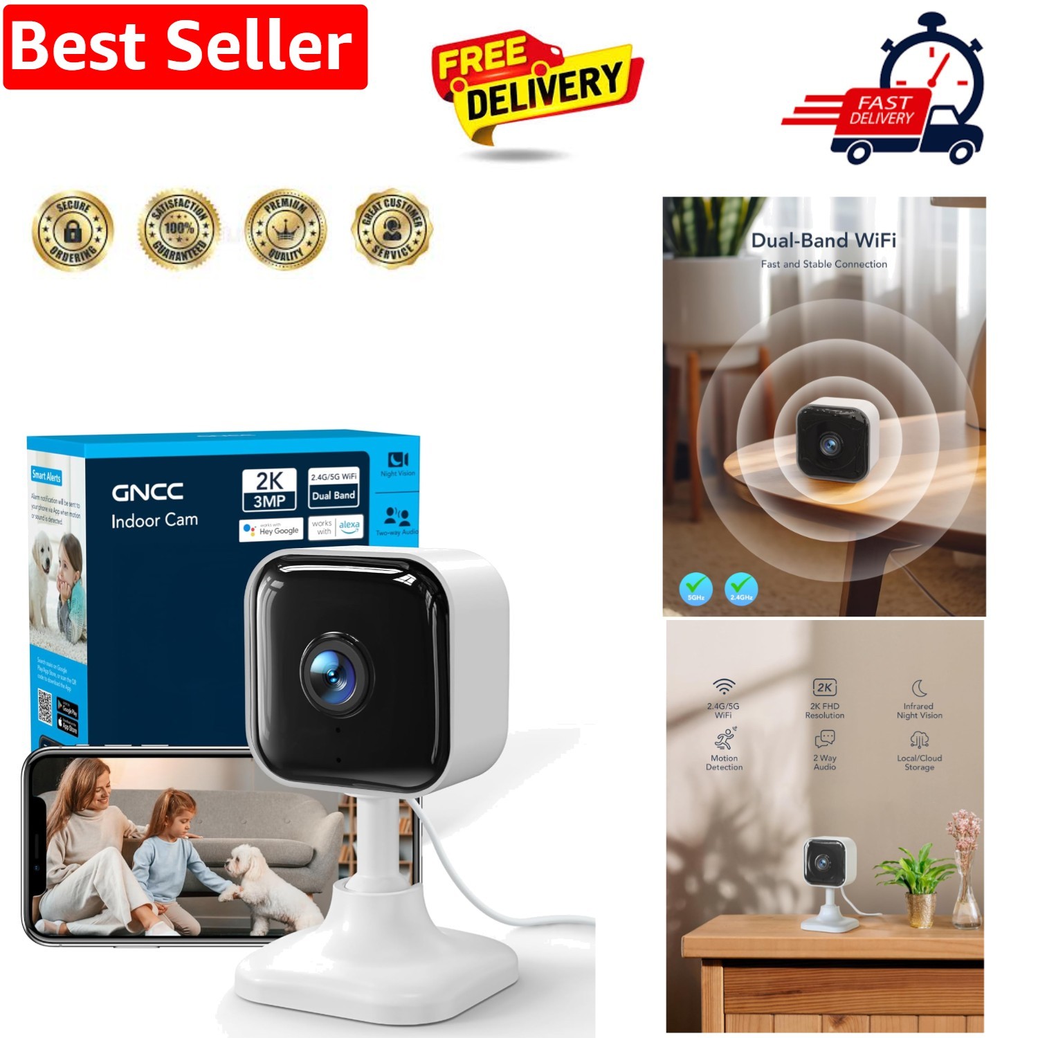GNCC 2K Indoor Security Cameras for Pet Dog with App, 2-Pack CCTV Cameras House Security WiFi, Night Vision, Motion Detection, 2-Way Audio, Cloud/SD Storage, Works with Alexa, 2.4G WiFi Only