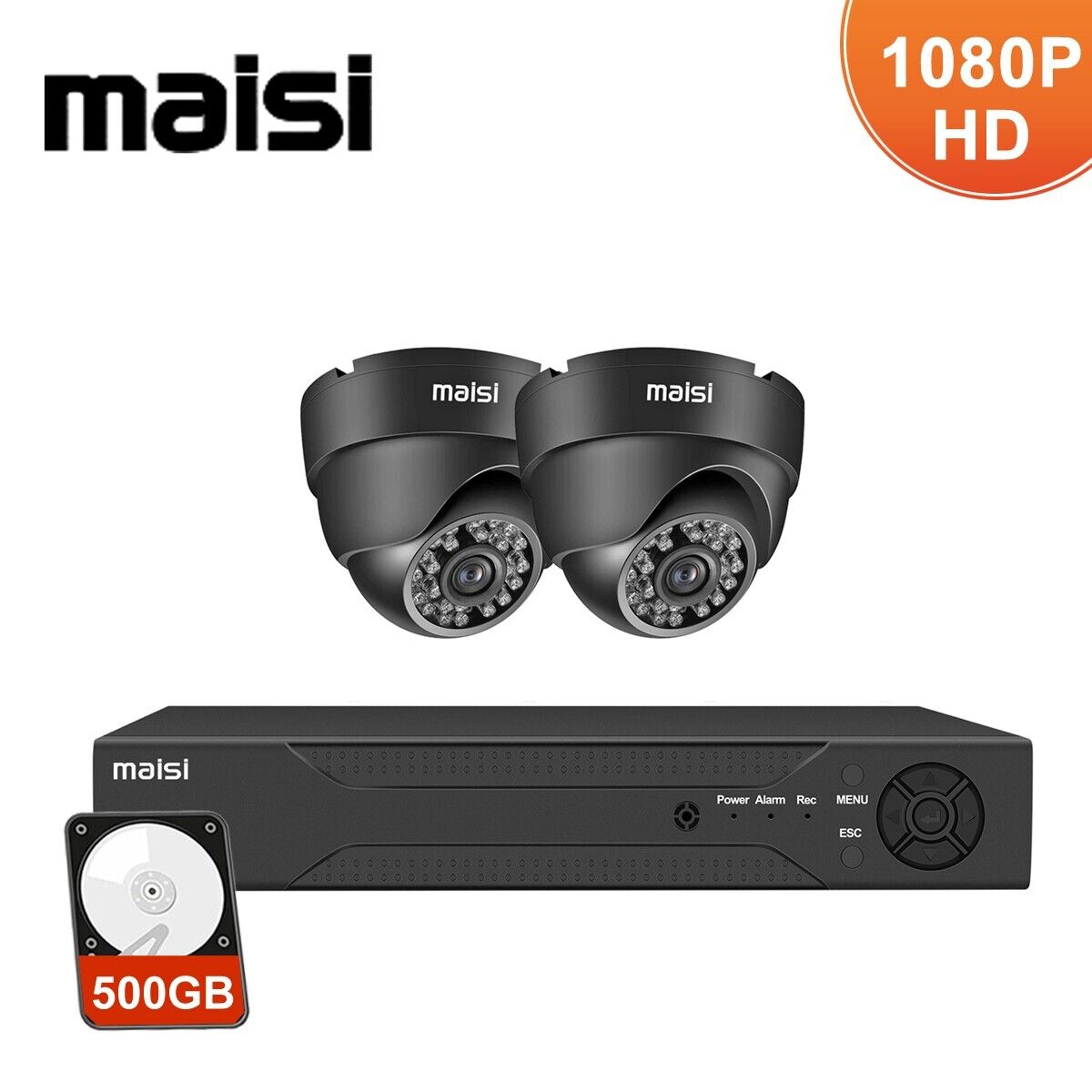 2 Cameras CCTV System 1080P HD 4CH DVR Home Surveillance Indoor with Hard Drive