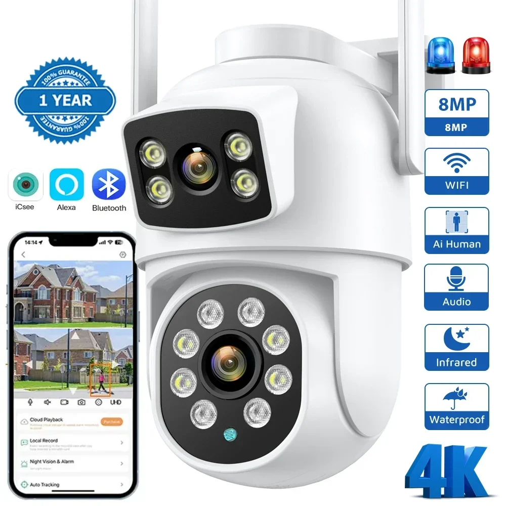 4K PTZ Wifi Camera Dual Lens Home Indoor Wireless CCTV Surveillance Camera Auto