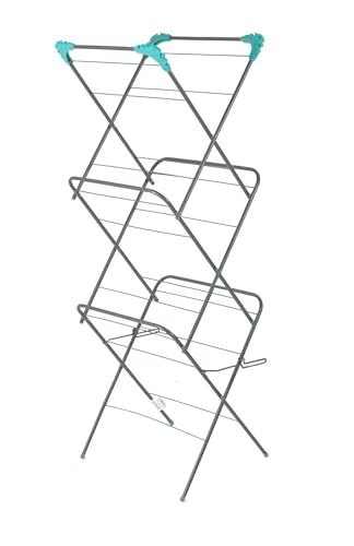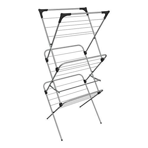 Addis 3 Tier Indoor Clothes Drying Airer Rack with 18 metres drying space, Fold out corner hooks for hangers, Metallic Silver