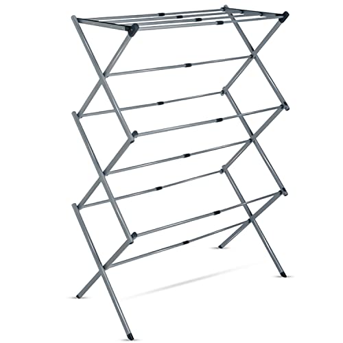 Zuvo 4 Tier-Grey Foldable Airer-Heavy Duty Stainless Steel-Perfect Indoor & Outdoor Clothes Drying Rack, L