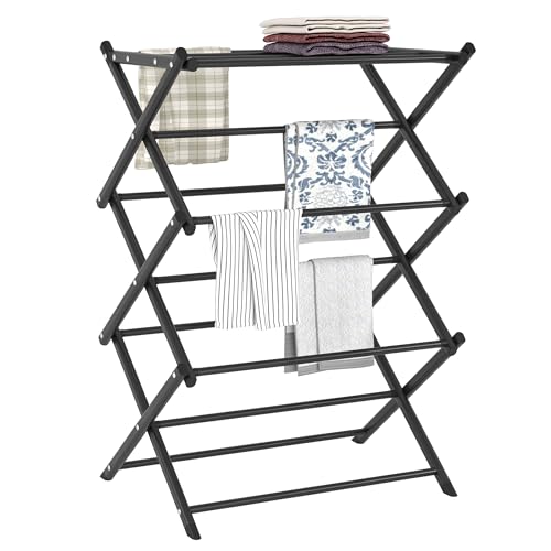 FKUO Household Indoor Folding Clothes Drying Rack, Dry Laundry and Hang Clothes,Towel Rack (Black)