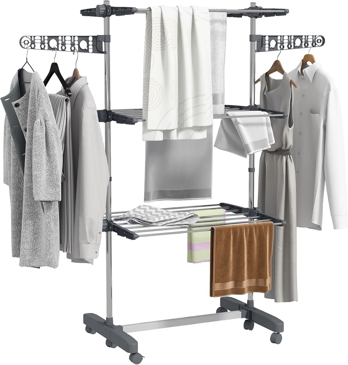 Crystals 3 Tier Foldable Indoor Clothes Airer, Extendable Drying Rack & Clothes Horse (Grey)