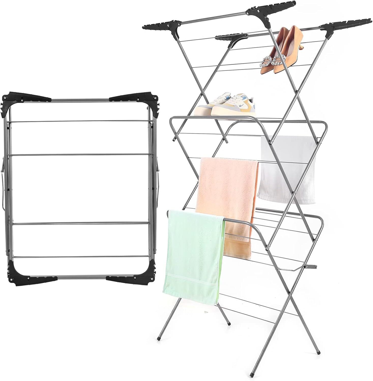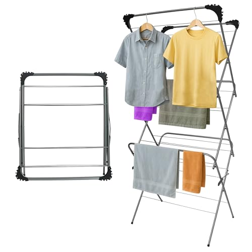 Rainberg 3 Tier Clothes Airer, Indoor Outdoor Clothes Drying Rack, Non-Slip Feet