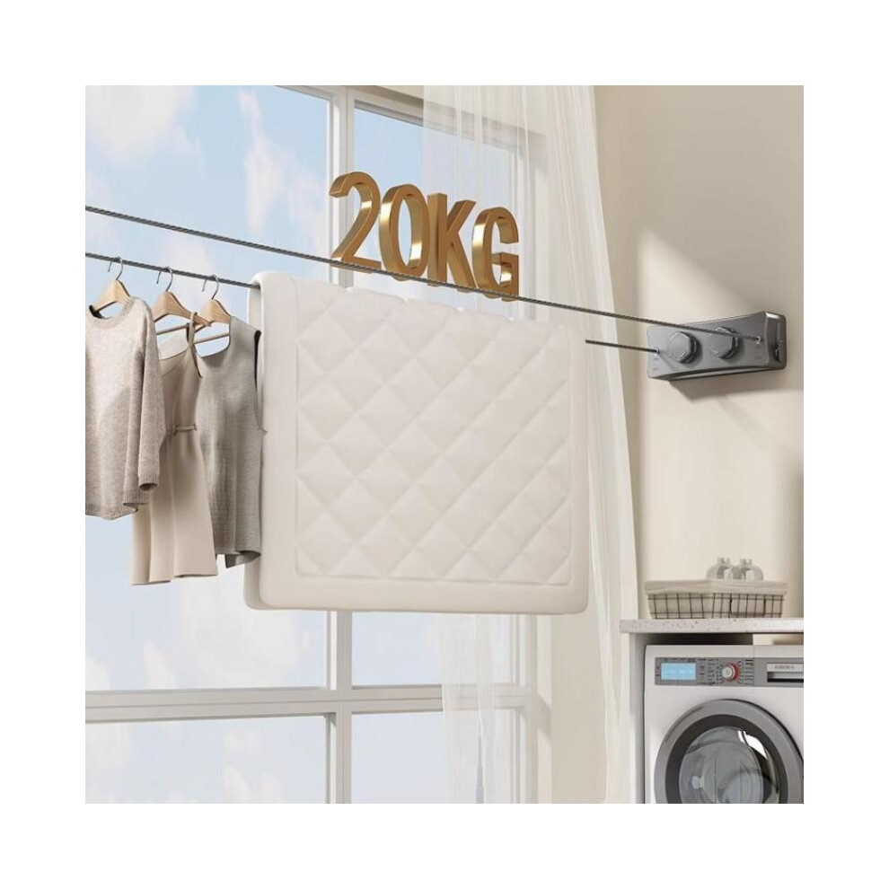 Wall Mounted Clothes Airer, Indoor Outdoor Retractable Clothes Drying Rack Grey