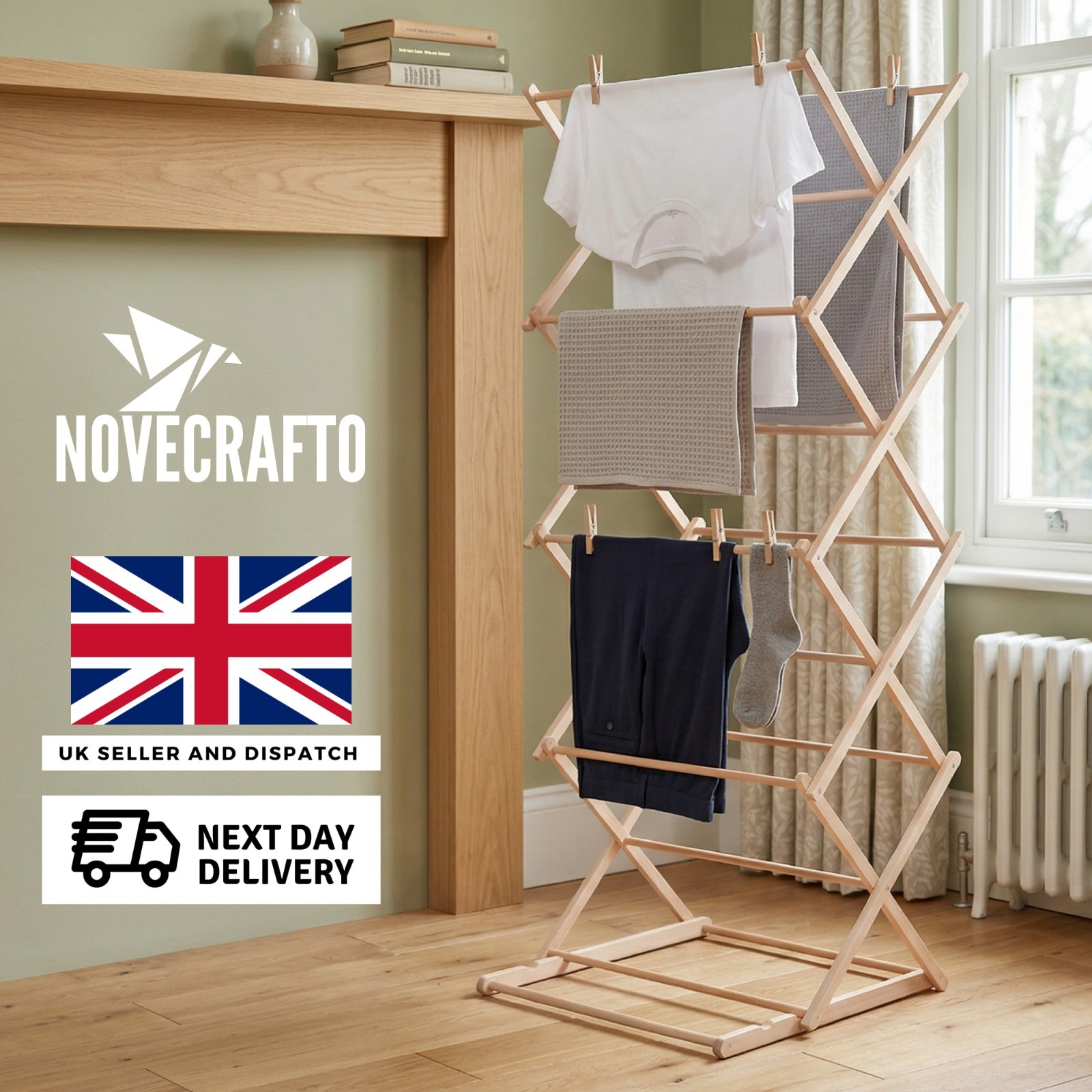 HH Home Hut Indoor Clothes Airer Drying Rack - 3 Tier Folding Laundry Maiden Rack, Dryer Rack, Clothes Horse, Airing Clothes, Foldable, Compact and Sutiable For Outdoor