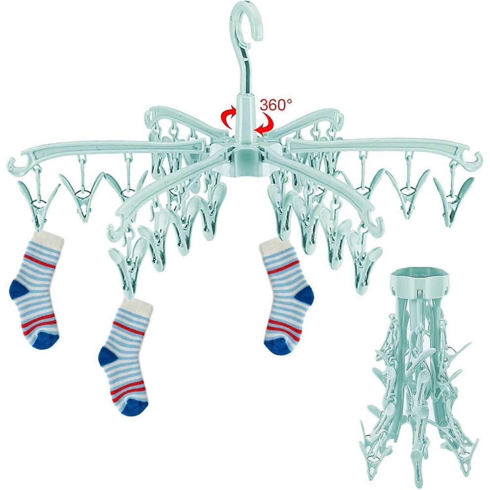 Indoor Outdoor Clothes Drying Rack, 24 Clips Foldable Hanging Clothes Dryer, Rotatable Sock Drying R
