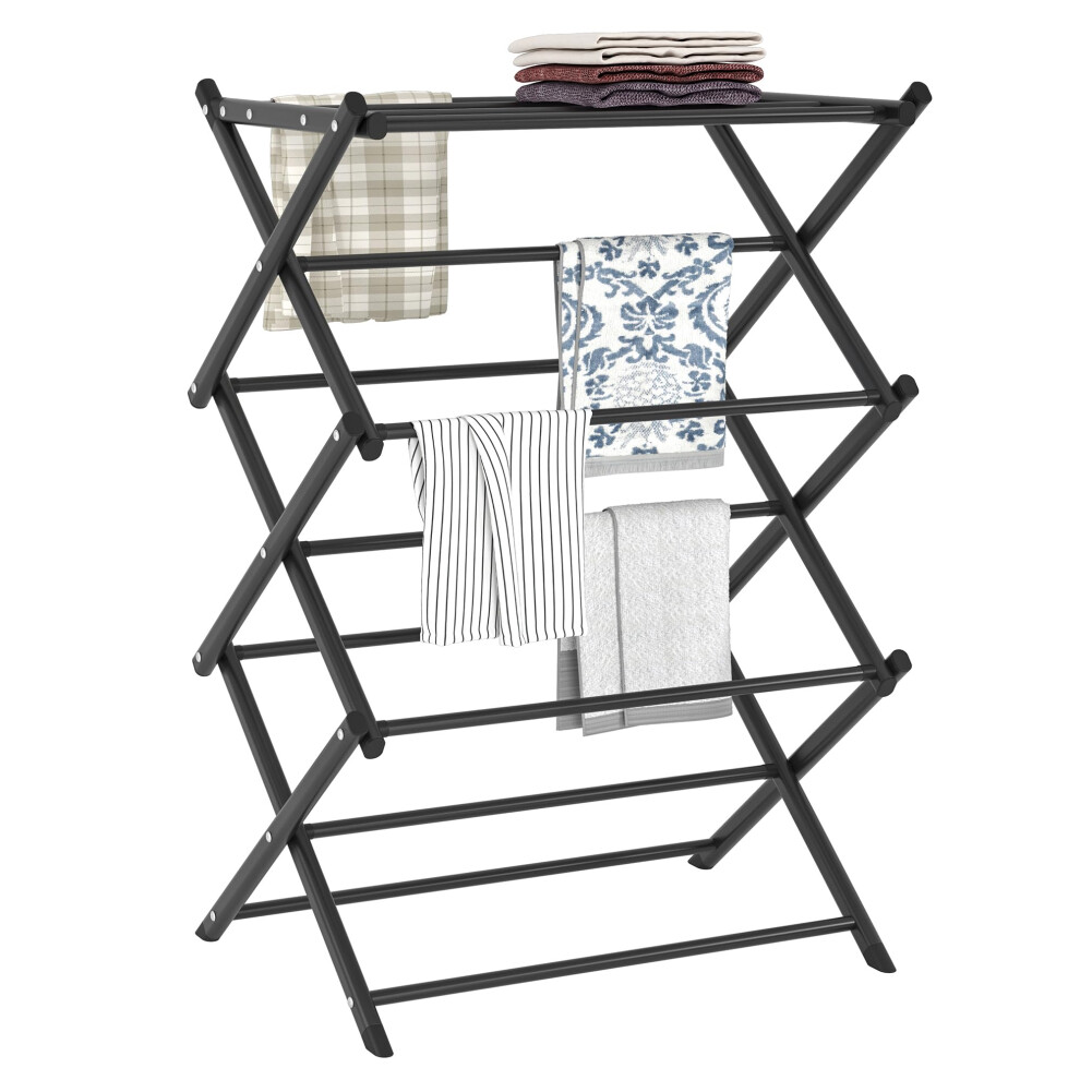 FKUO Household Indoor Folding Clothes Drying Rack Dry Laundry and Hang Clothes Towel Rack (Black)