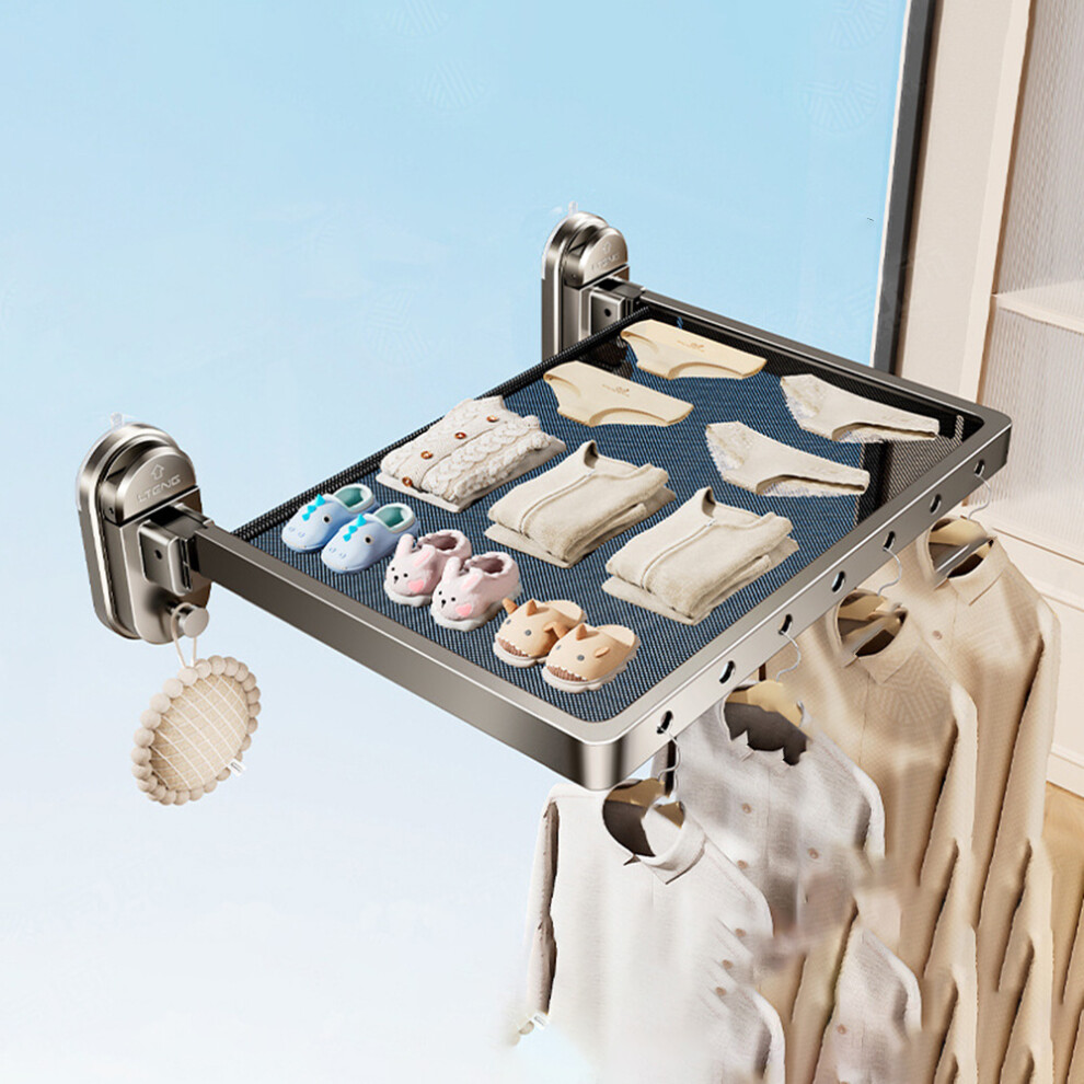 75cm Suction Cup Foldable Drying Net Carbon Steel Indoor Balcony Clothes Socks Drying Rack