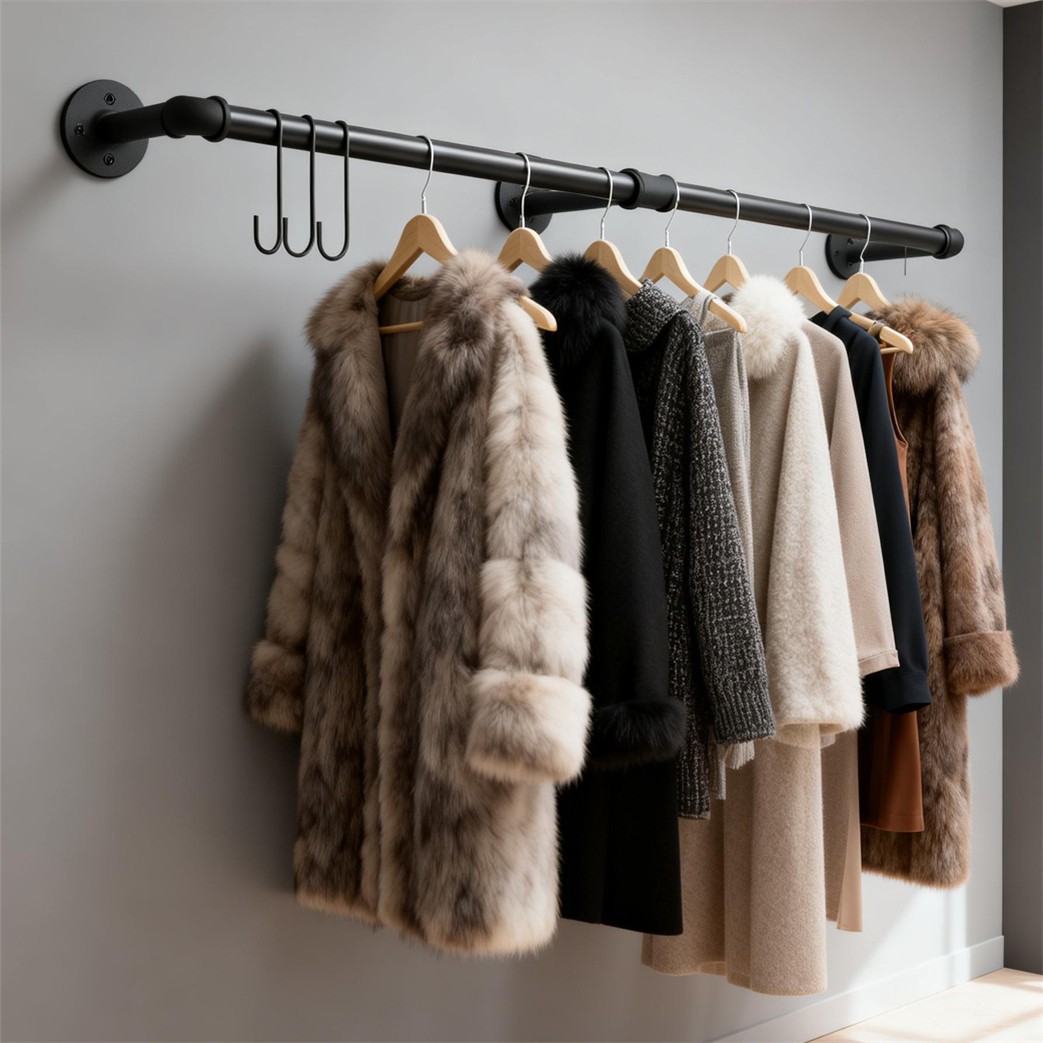 6Ft Wall Mounted Clothes Rail Pipe Garment Rack Indoor Clothes Airer Drying Rack