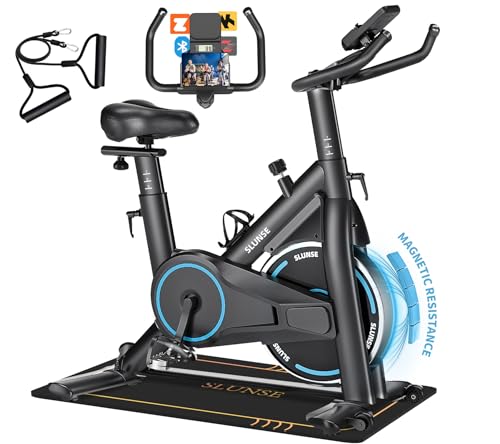 Exercise Bike, SLUNSE Spin Bikes for Home Use, Stationary Bike with App for Customized Exercise Plans, Quiet Indoor Cycling Bike Exercise Equipment for Home Gym Use, 180KG Weight Capacity
