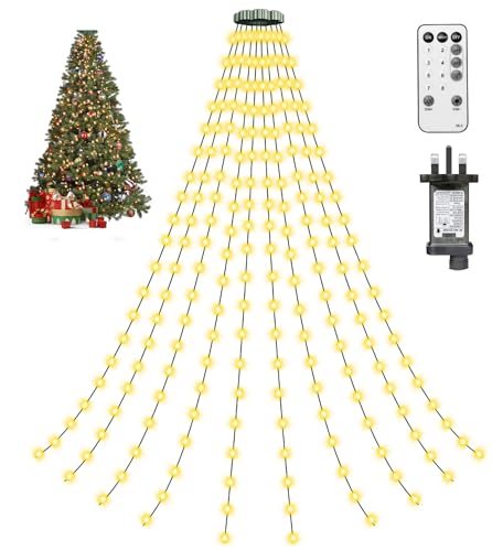 ULIGHTOWN Christmas Tree Lights with Ring, 2M X10 Strands 200 LEDs Warm White Xmas Lights, Waterproof/Remote Control/Timer/Indoor/Outdoor Fairy Lights for 5-8fFT Christmas Tree Decor