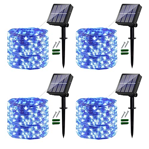 Ligarko Solar String Lights Outdoor, 4 Pack 120LED Solar Garden Lights Waterproof, 14M/46Ft 8 Modes Indoor/Outdoor Fairy Lights Copper Wire Decorative Lighting for Patio, Yard, Party, Wedding (Blue)