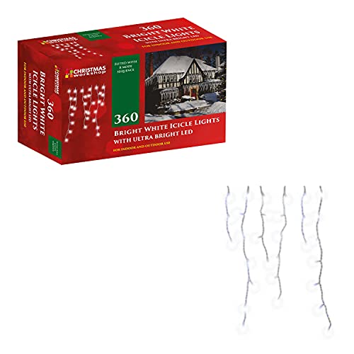 Christmas Workshop 78640 360 Icicle LED Outdoor Christmas Lights | 8.5 Metres | Bright White Colour | Indoor & Outdoor Fairy Lights | Weddings & Gardens | 8 Functions | Mains Powered