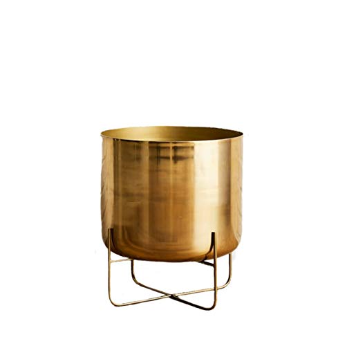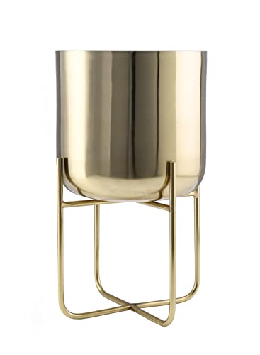 Serene Spaces Living Short Gold Soho Planter with Detachable Metal Stand, Decorative Indoor Planter Pot, Flower Pots Stand for Living Room, Kitchen, Office, Measures 13" Tall and 7.25" Diameter