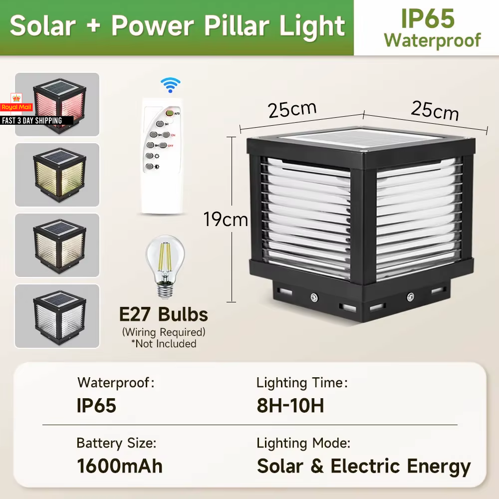 Outdoors LED Solar Pillar Light Replaceable E27 Bulb Indoor Electricity Connecti