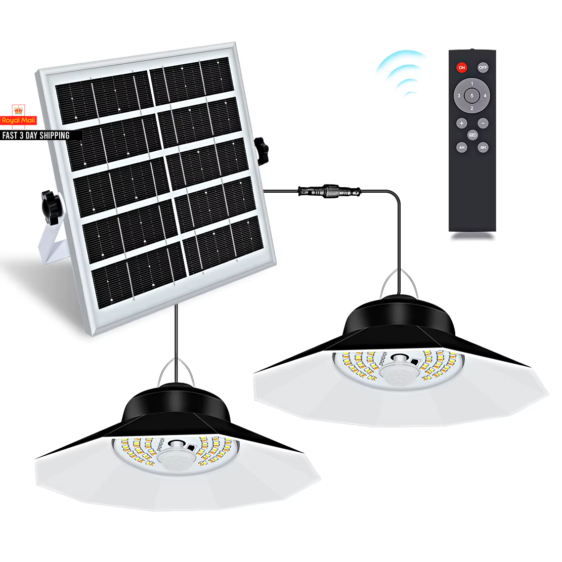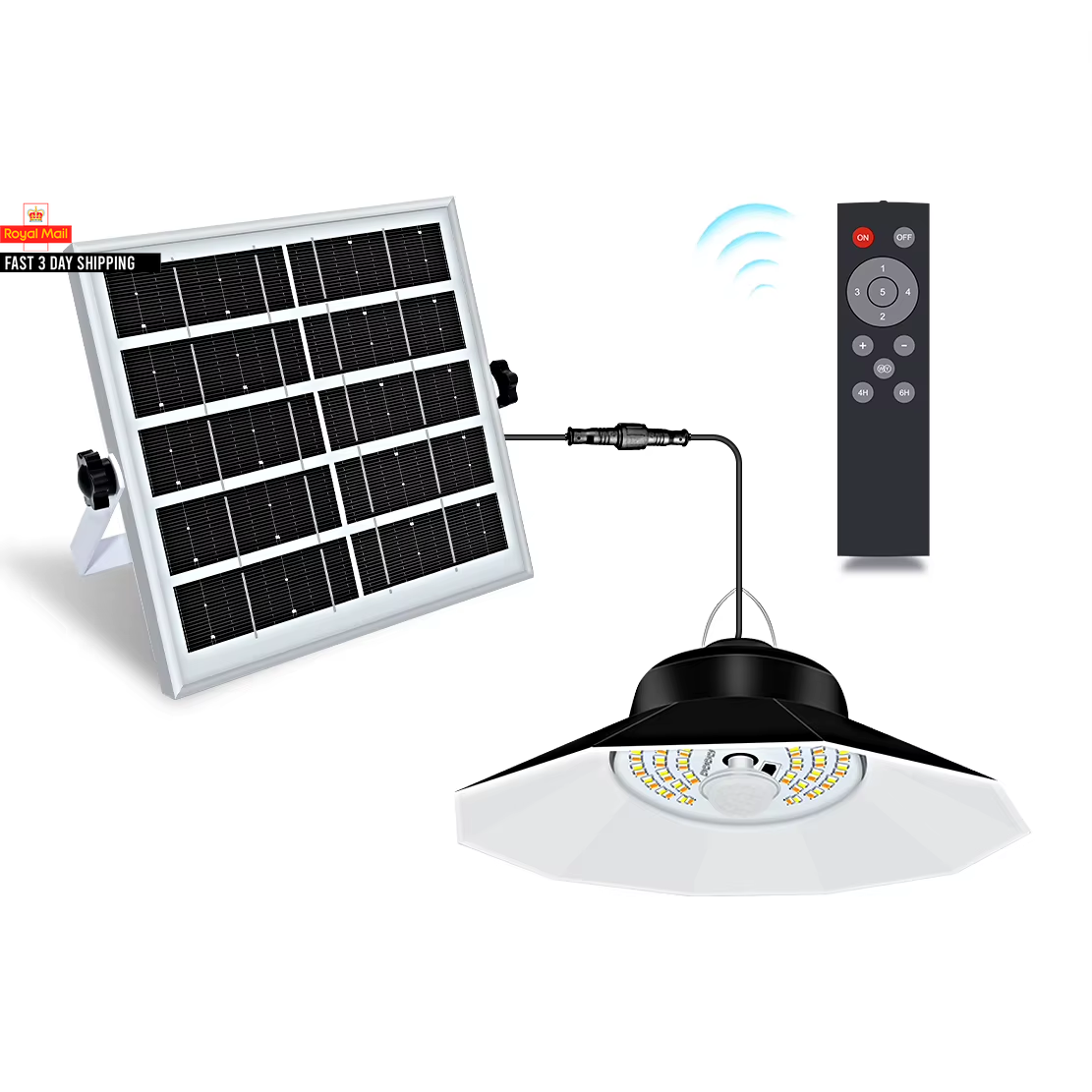 FabStyl Solar Shed Light Indoor & Outdoor Motion Sensor,3 Color Temperature, Gazebo Pendant Light Solar Powered with Remote Control 5 Modes IP65 Waterproof for Garage Garden Warehouse Patio Umbrella