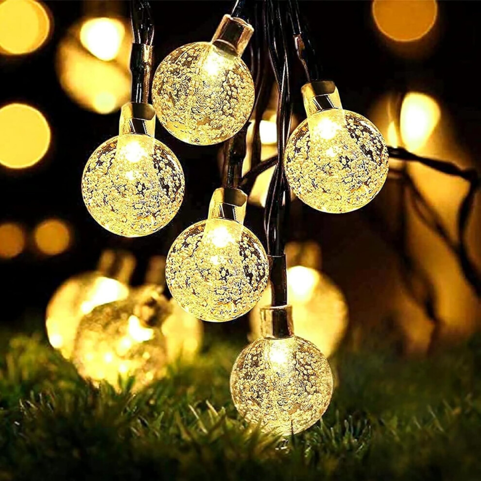 Solar String Lights Outdoor, 24FT 50LED Crystal Balls Waterproof LED Fairy Lights, 8 Modes Outdoor/Indoor Solar Powered Lights, Decorative Lighting f