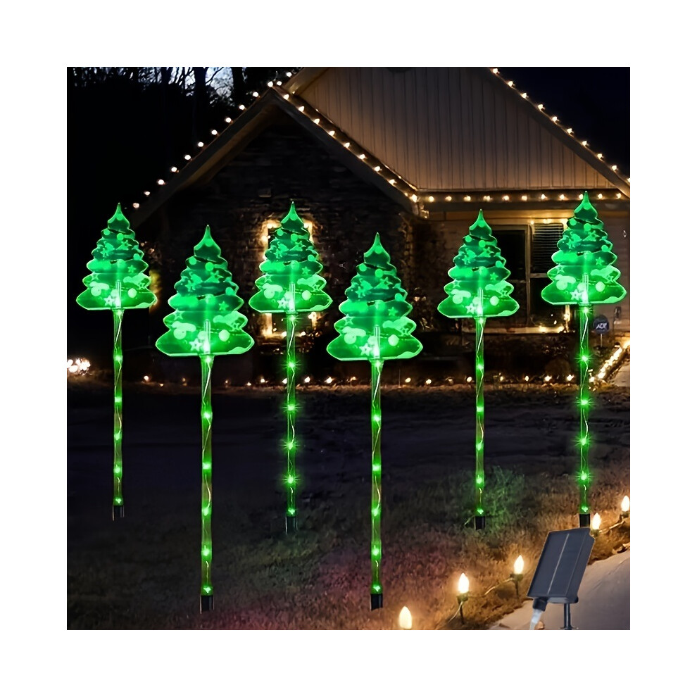 (6 In 1 (Christmas Tree)) 1 Pack of 6 Outdoor and Indoor Garden Solar Lights,Santa, Snowman & Christmas Tree Decorations for Pathways, Lawns,