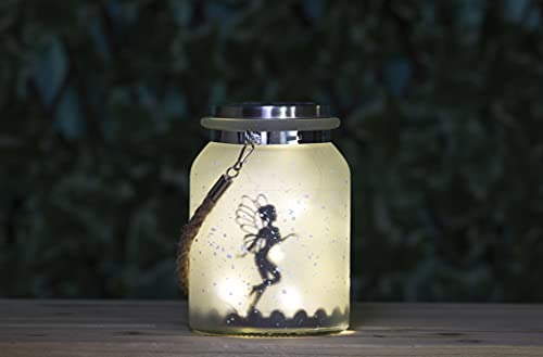Garden Mile Solar Powered Hanging Fairy Lantern Frosted Glass Fairy Light Lamp Outdoor Indoor Mason Jar Lighting with 20 LEDs Firefly Lights Garden Solar Lantern Jar
