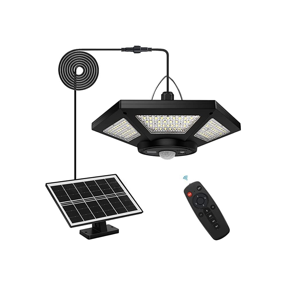 Solar Powered Motion Sensor Pendant Light IP65 Waterproof, Solar Indoor Outdoor Lights with Remote Control Dusk to Dawn Auto On Off 5 Lighting Modes S