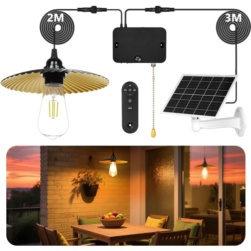 Indoor/Outdoor Solar Lights with Remote Control, 7800 mAh, 2 Adjustable Modes, AUTO ON/OFF, IP54 Waterproof, Timer, USB Charging, for Garden, Pergola,