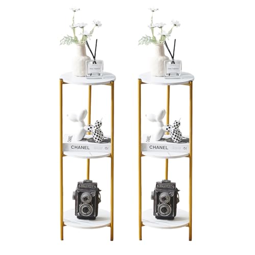 nozama Tall Side Table,Small Coffee Table,Small Side Table,Metal Plant Stand Indoor,2 Tier Round Flower Stand (3 Tier White 30x30x90cm, Pack 2)