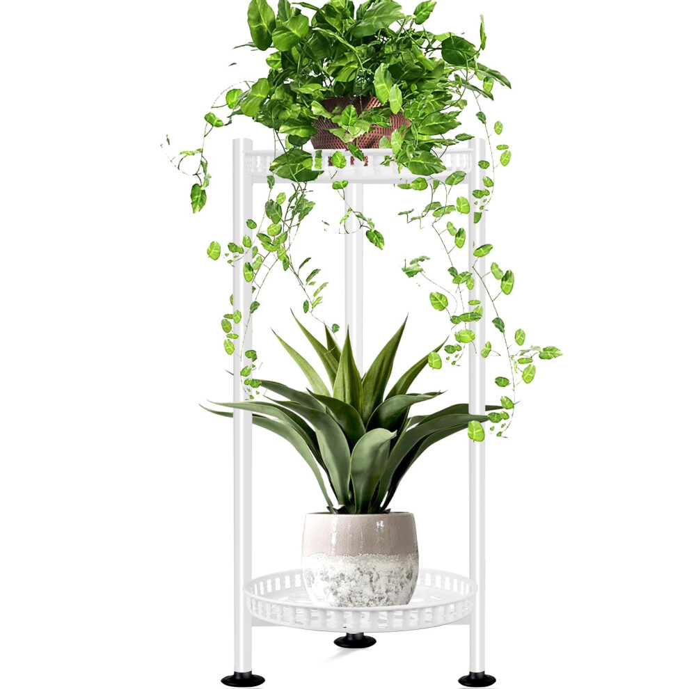 2 Tier Tall Plant Stand Shelf, Indoor Outdoor Corner Vertical Rack, Patio Living Room Organizer