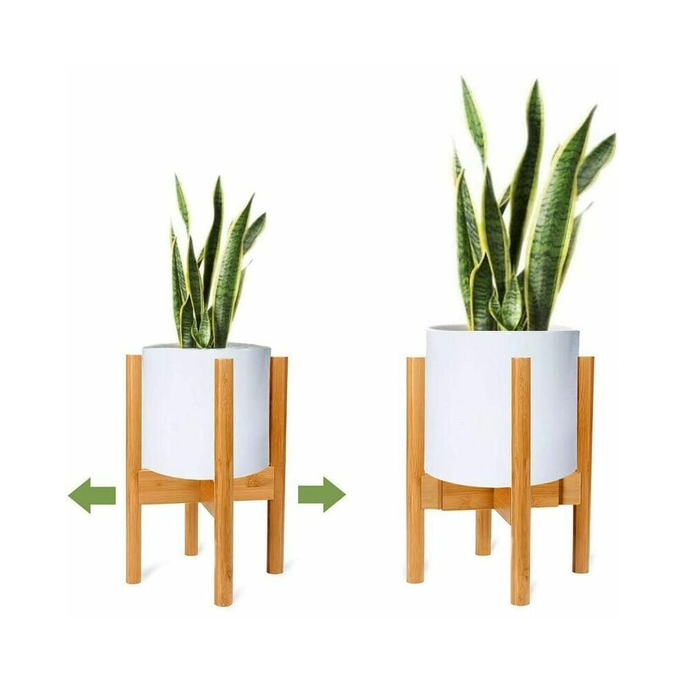 Elegant House Floor Planter Stand, Mid Century Design Inspired Bamboo Indoor Decor, 15cm Tall Plant Stand Supports Various Pots, Sustainable