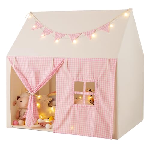 EagleStone Kids Play Tent with Star Light, Padded Mat,Toddler Tents Indoor,Playhouse for Toddlers, Boys, Girls, Neutral Color, Indoor Bed Tent Gift Toy (Pink)