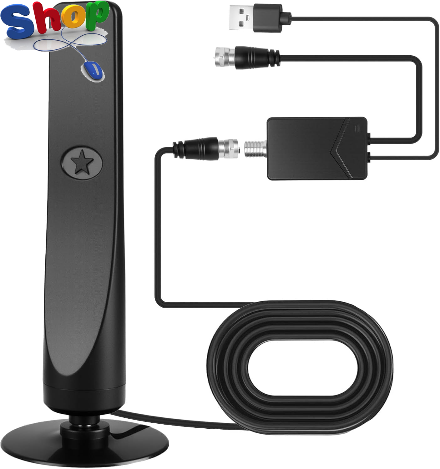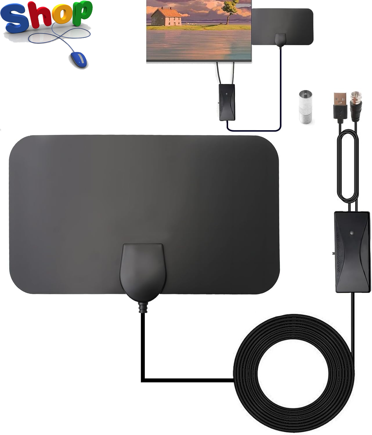 Indoor TV Aerial with Signal Booster - 280+ Miles Long Range Digital Antenna for