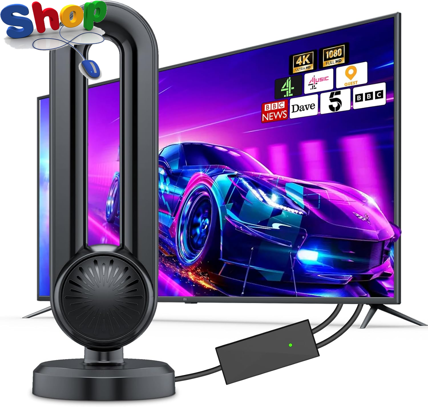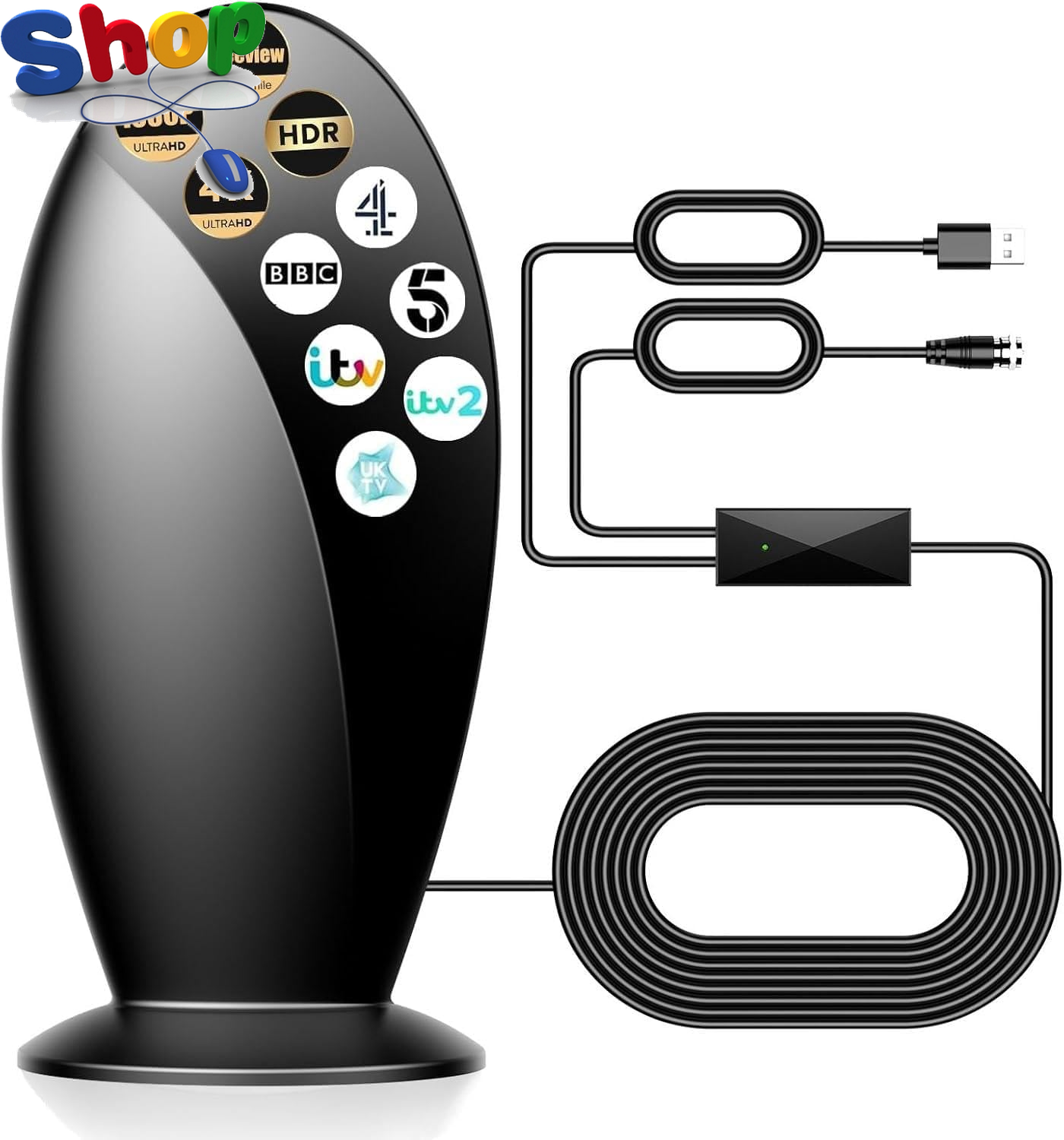 TV Aerial Indoor, Freeview Indoor TV Aerial with 560+ Miles Range+Signal Booster